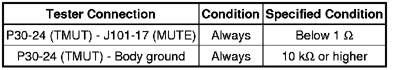 AUDIO / VIDEO: AUDIO AND VISUAL SYSTEM (w/o Navigation System without Multi-display): Mute Signal Circuit between Stereo Component Amplifier and Telematics Transceiver