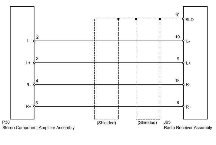 AUDIO / VIDEO: AUDIO AND VISUAL SYSTEM (w/o Navigation System without Multi-display): Sound Signal Circuit between Radio Receiver and Stereo Component Amplifier
