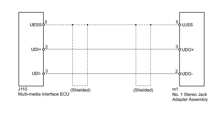 The No. 1 stereo jack adapter assembly sends the sound data signal of an external device to the multi-media interface ECU through this circuit.