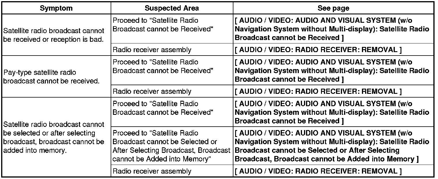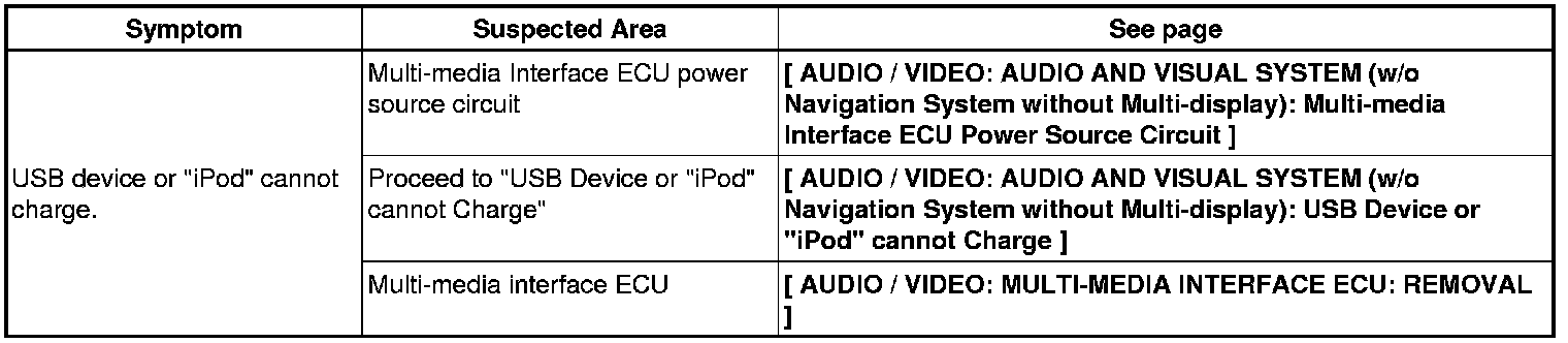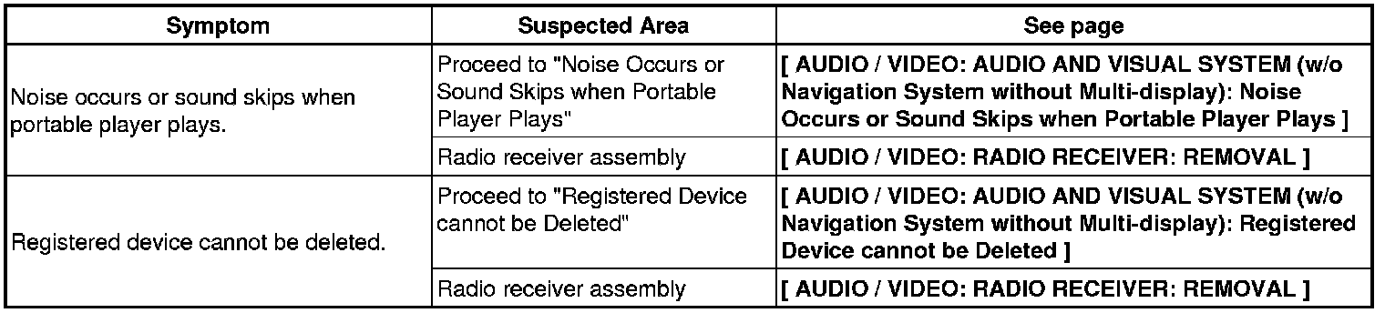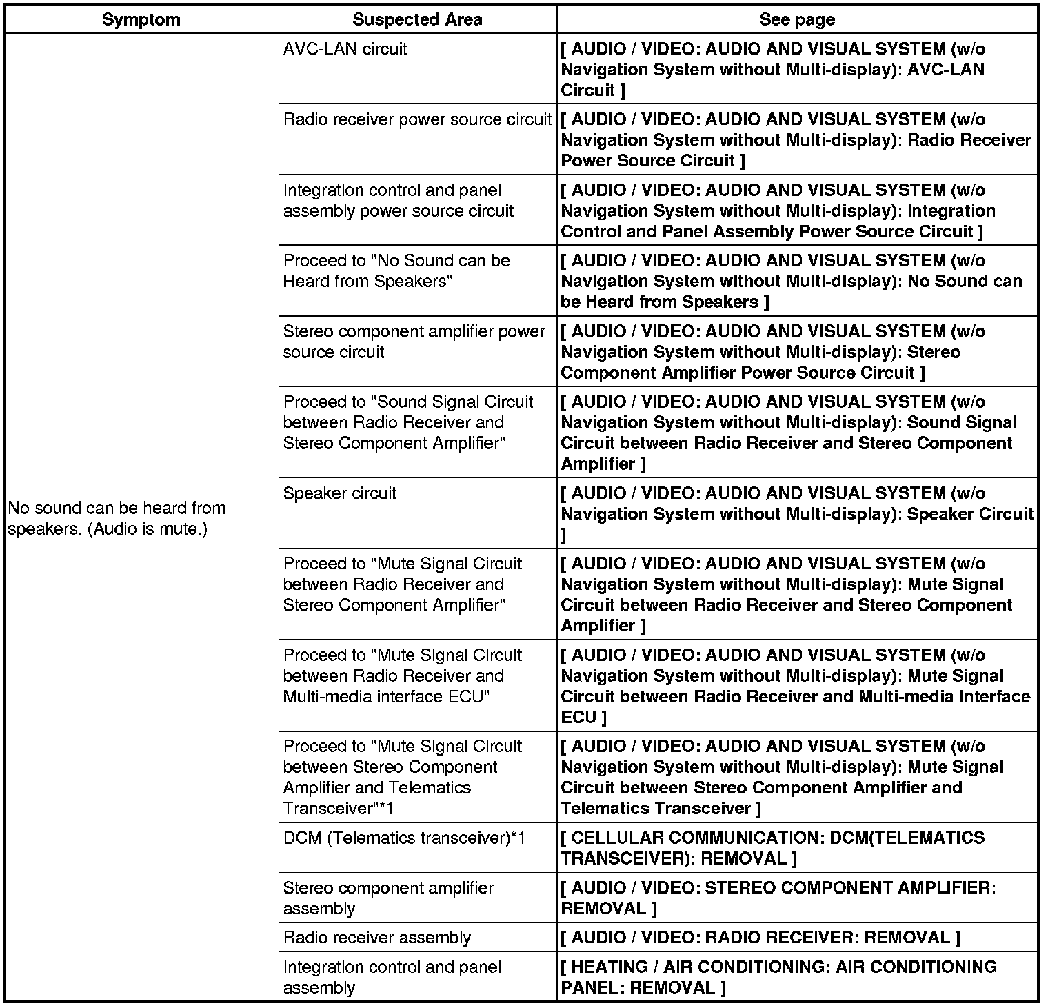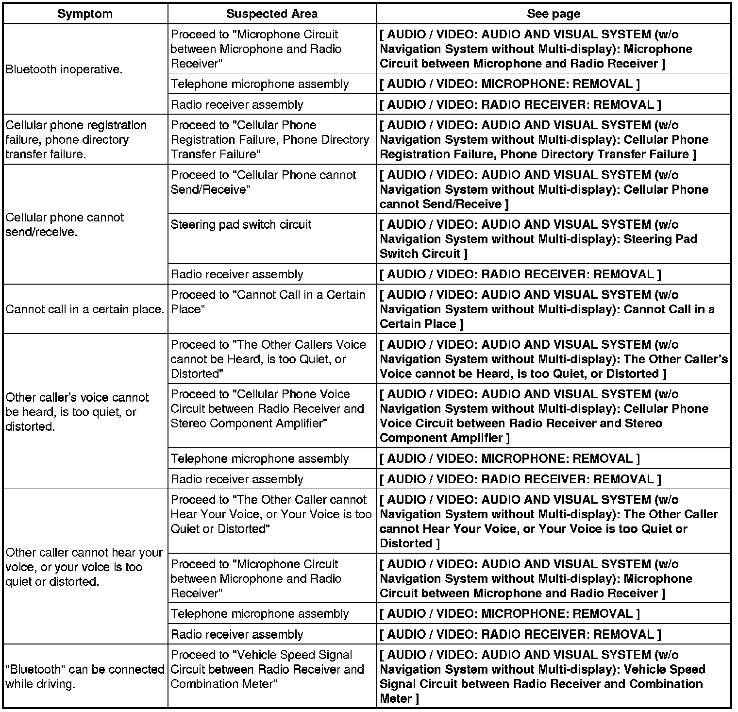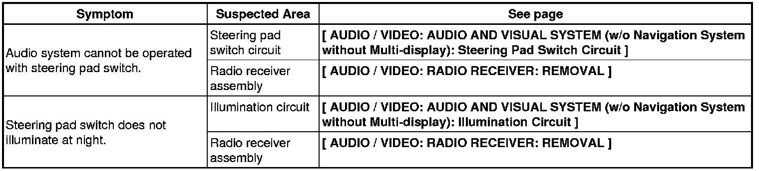 AUDIO / VIDEO: AUDIO AND VISUAL SYSTEM (w/o Navigation System without Multi-display): PROBLEM SYMPTOMS TABLE