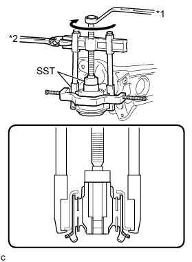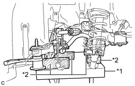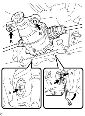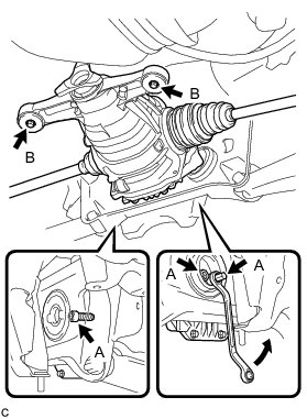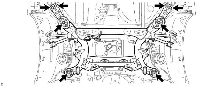 (c) Remove the bolt, washer, nut (C) and rear No. 2 suspension arm assembly LH.