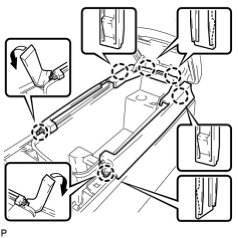 (b) Disengage the 4 claws and remove the front upper console panel garnish.