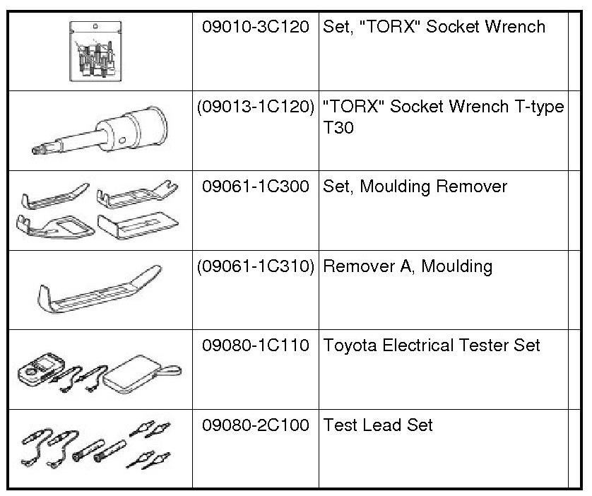 PREPARATION: DOOR LOCK: RECOMMENDED TOOLS