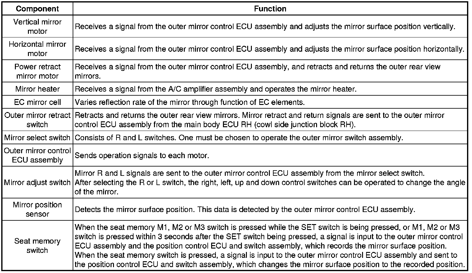 MIRROR (EXT): POWER MIRROR CONTROL SYSTEM (w/ Memory): SYSTEM DESCRIPTION