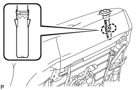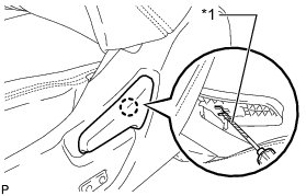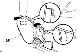 (a) Using a screwdriver wrapped with protective tape, disengage the claw and remove the reclining adjuster release handle.