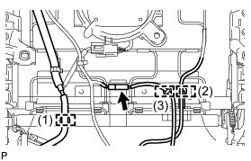 (a) Disengage the 2 clamps (1) and (2), disconnect the 2 wire harnesses.