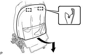 (b) Disengage the 2 hooks and remove the front seatback board sub-assembly as shown in the illustration.