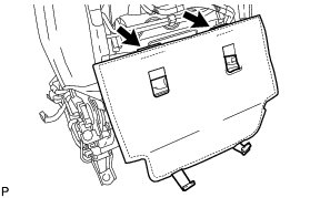 (c) Disengage the 2 claws and remove the seat cushion climate control duct as shown in the illustration.