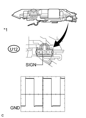 (1) Connect an oscilloscope to terminal 3 and body ground with the climate control blower LH connector still connected.