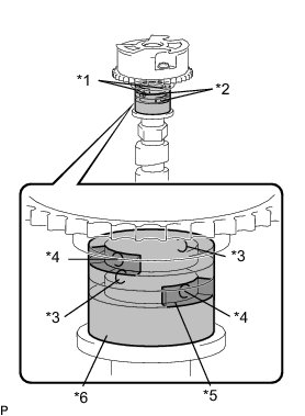 Be sure to release the air pressure from the advance side path first. If the air pressure of the retard side path is released first, the camshaft timing exhaust gear assembly may abruptly shift in the advance direction and break the lock pin or other parts.