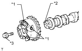 (1) Clamp the camshaft in a vise, and confirm that the camshaft timing gear assembly is locked.