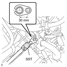 * The "with SST" torque value is effective when using a torque wrench with a fulcrum length of 300 mm (11.81 in.) Service Precautions.