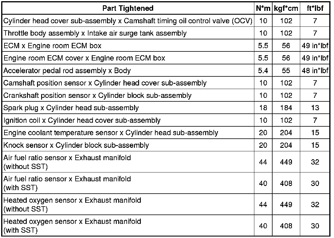 SPECIFICATIONS: 4GR-FSE ENGINE CONTROL: TORQUE SPECIFICATIONS
