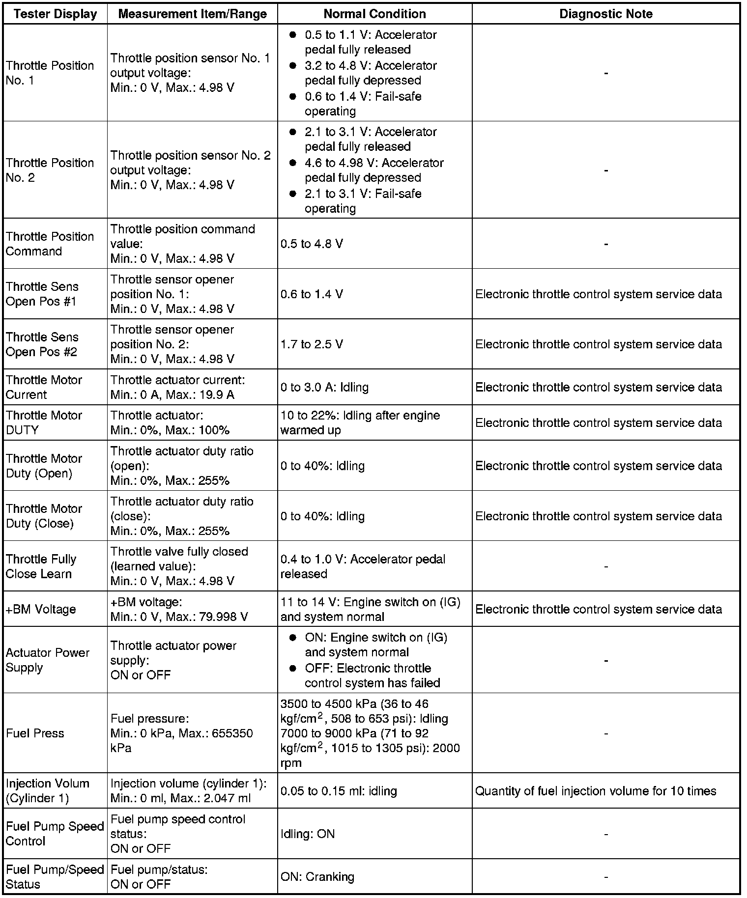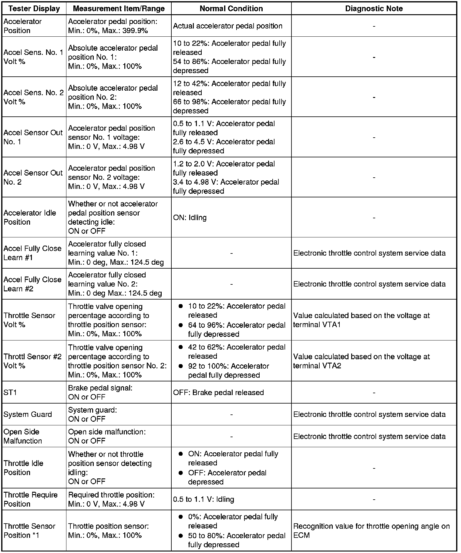 * *1: Excluding throttle valve opening percentage due to idle speed control.