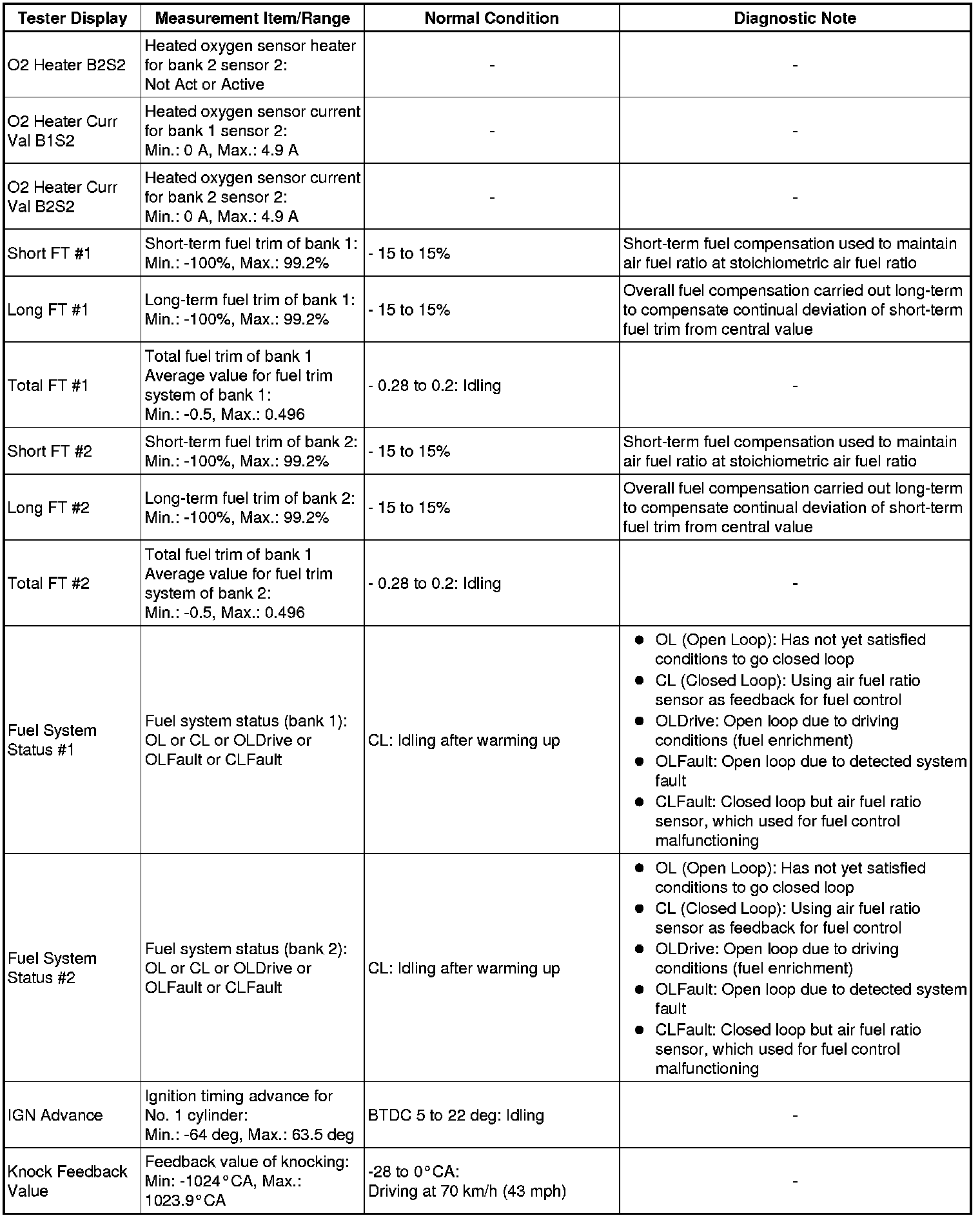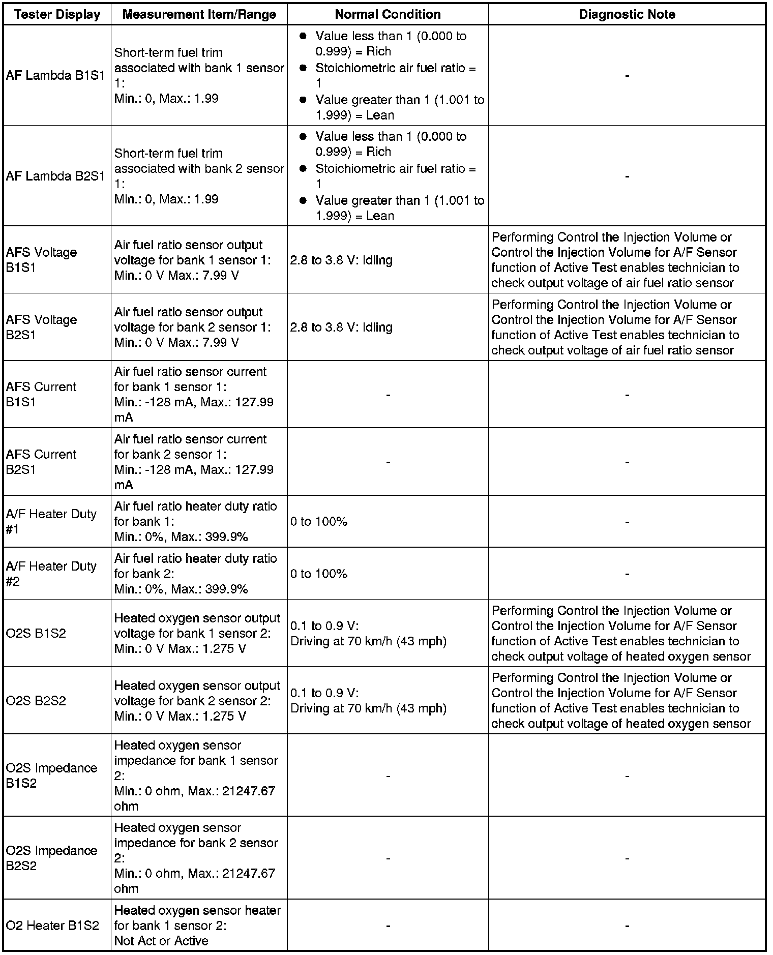 Using the Techstream to read the Data List allows the values or states of switches, sensors, actuators and other items to be read without removing any parts. This non-intrusive inspection can be very useful because intermittent conditions or signals may be discovered before parts or wiring is disturbed. Reading the Data List information early in troubleshooting is one way to save diagnostic time.