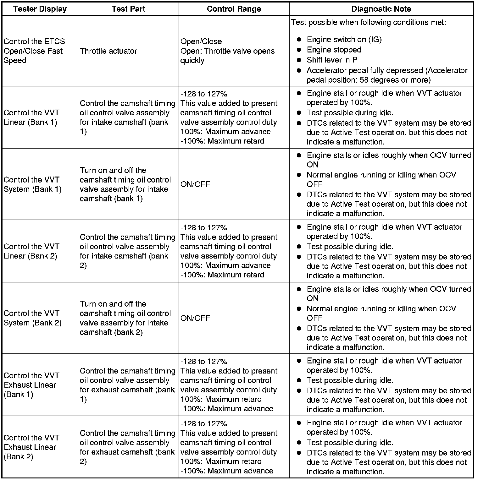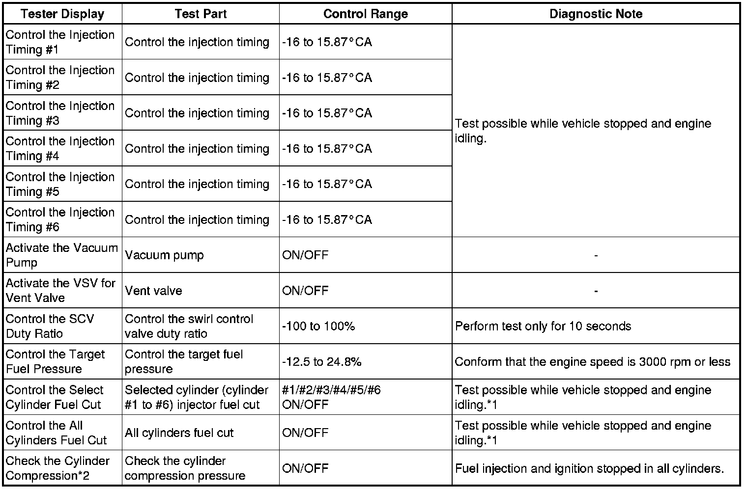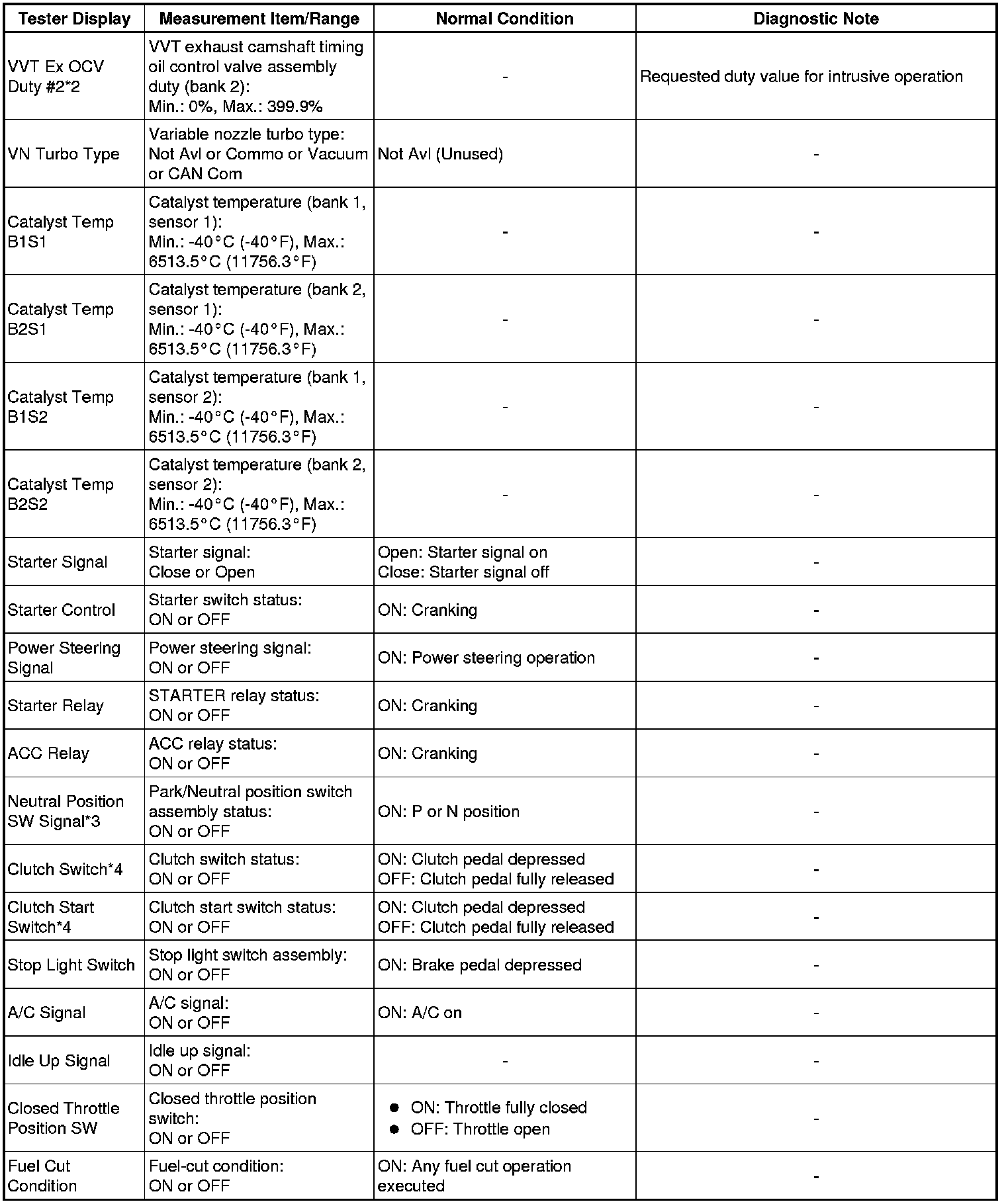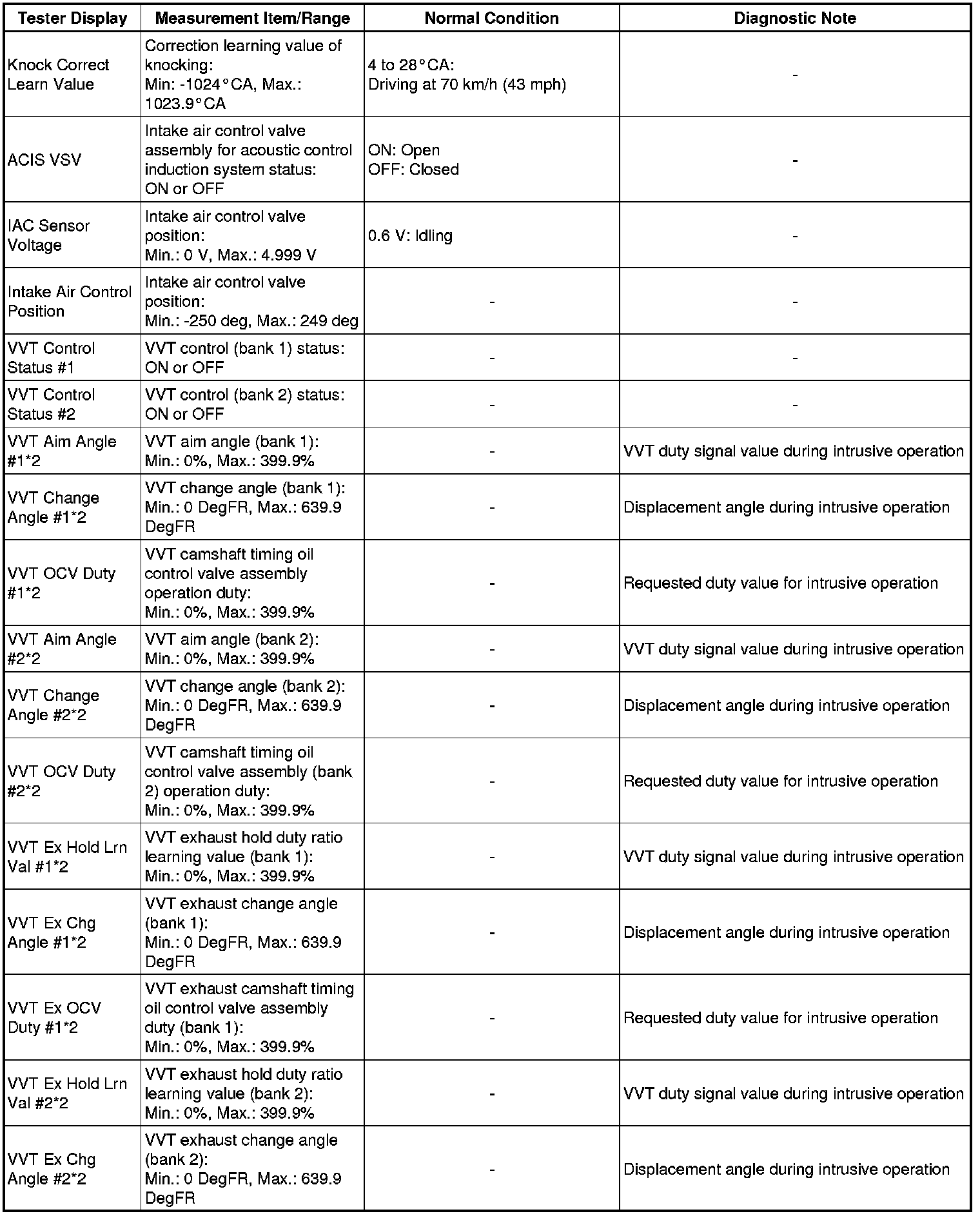 * *2: Data List values are only displayed when performing the following Active Test: Control the VVT System (Bank 1, 2), Control the VVT Linear (Bank 1, 2) and Control the VVT Exhaust Linear (Bank 1, 2). For other Active Tests, the Data List value will be 0.