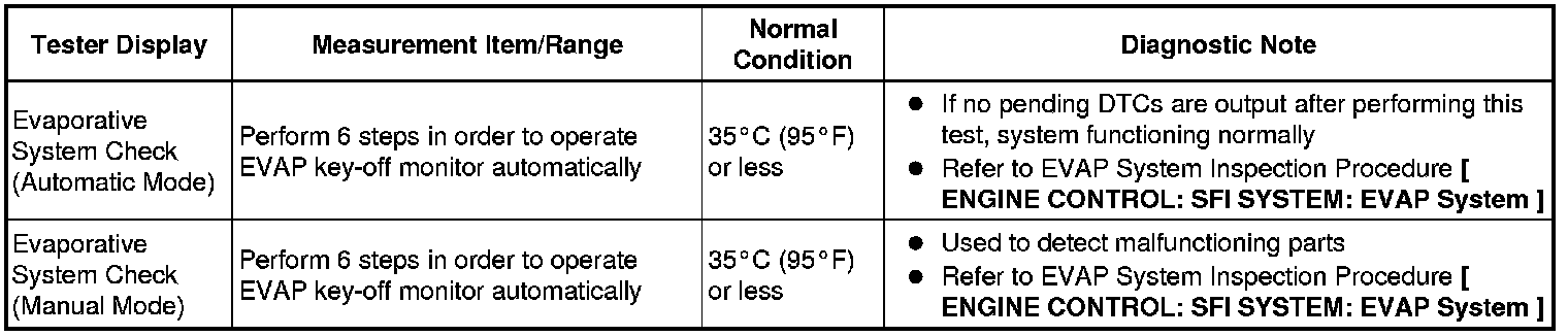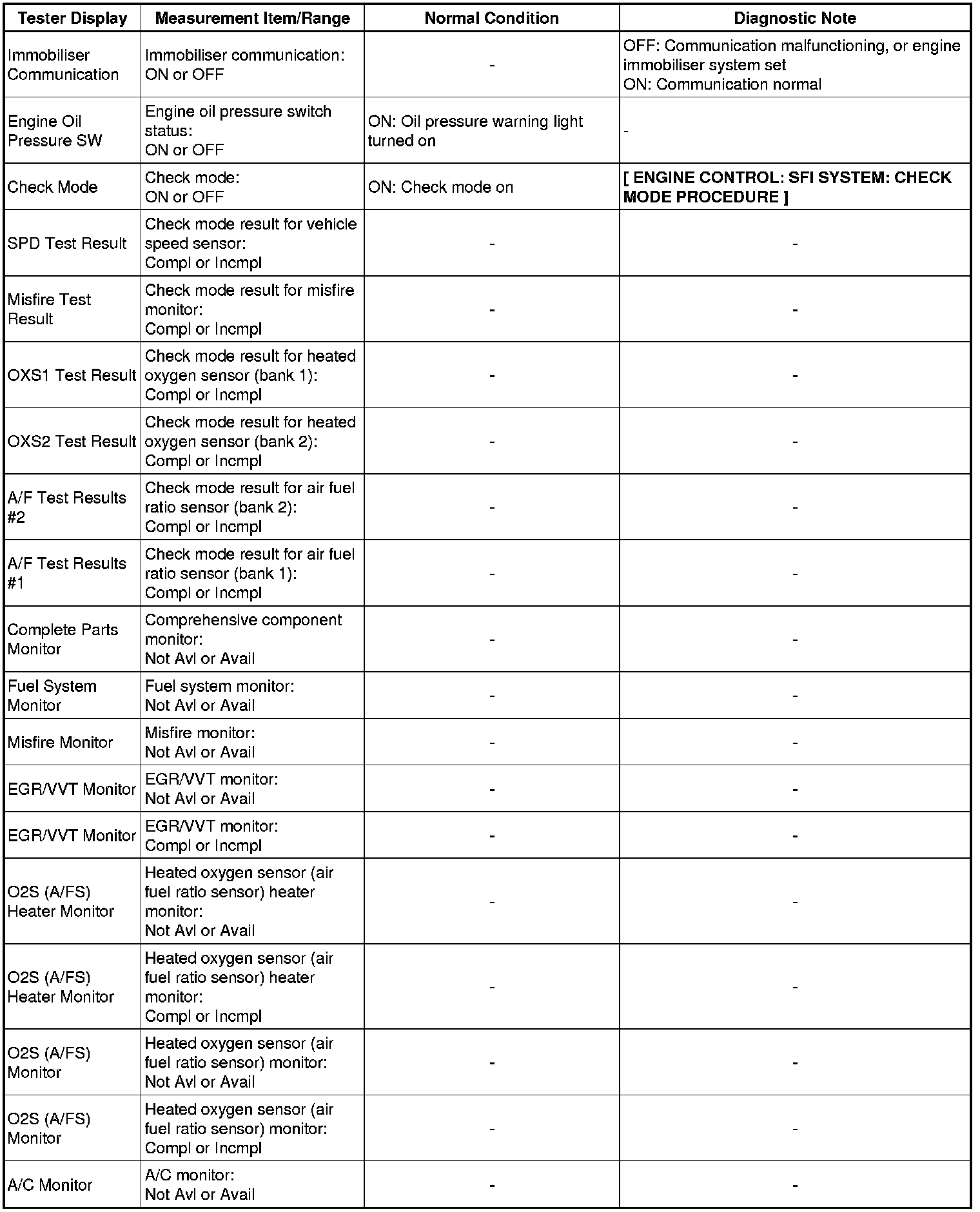 (e) Perform the System Check by referring to the table below.