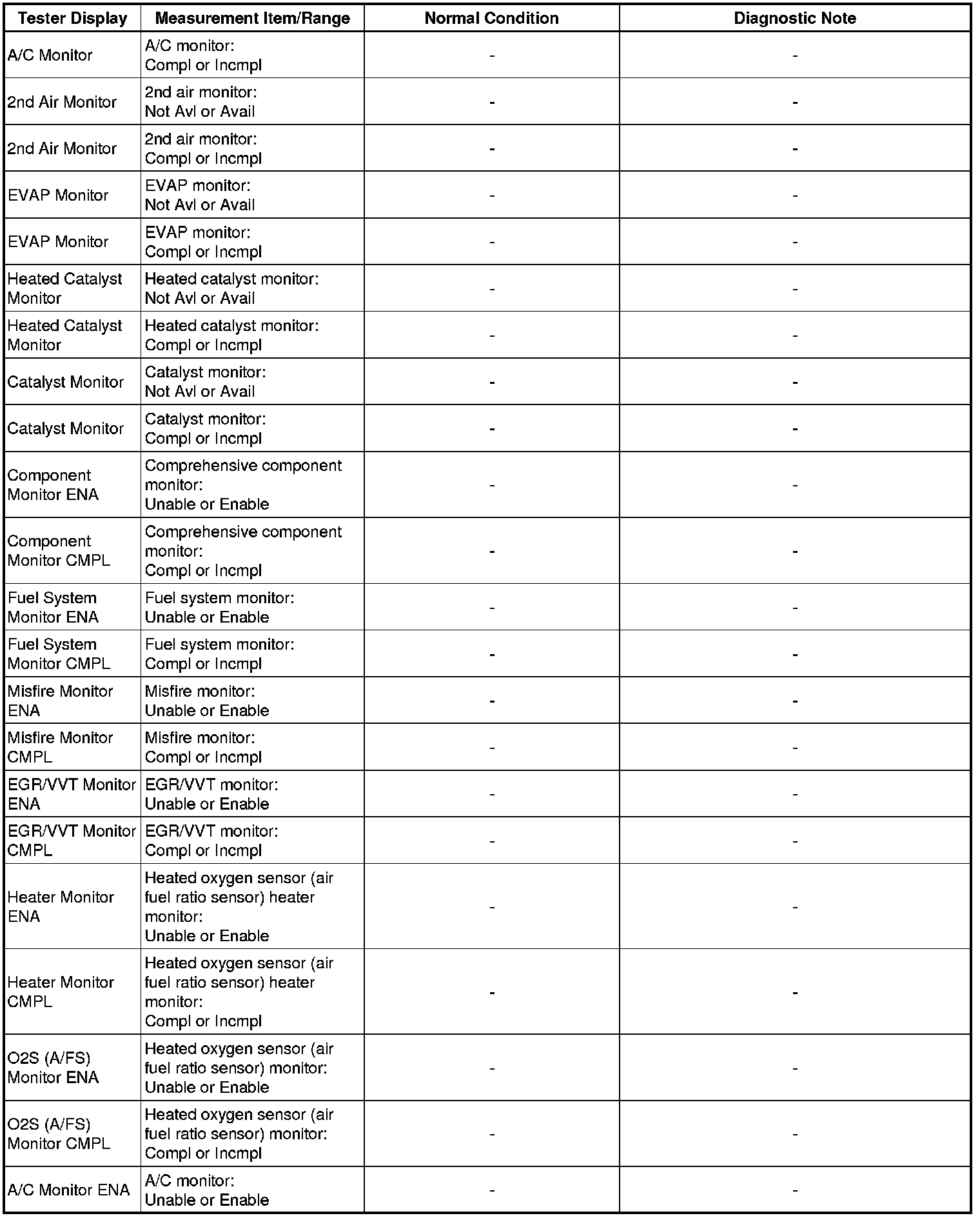 * Normal condition: If no idling conditions are specified, the shift lever should be in N or P, and the A/C switch and all accessory switches should be off.