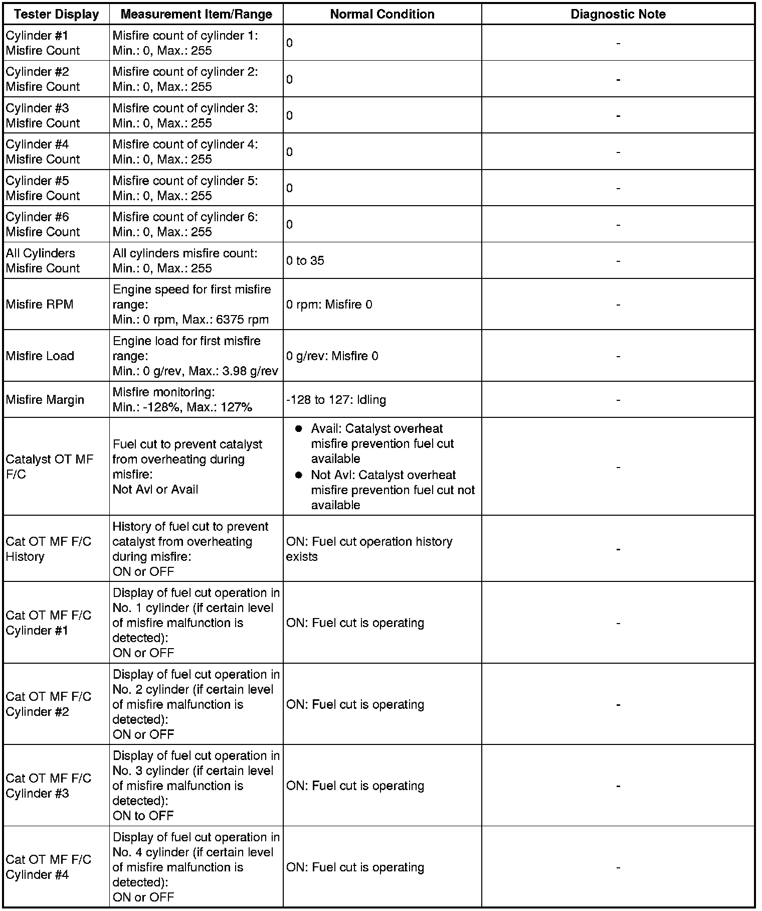 * If the display of the Data List item Catalyst OT MF F/C item is Not Avl, perform this Active Test with the vehicle stopped and the engine idling.