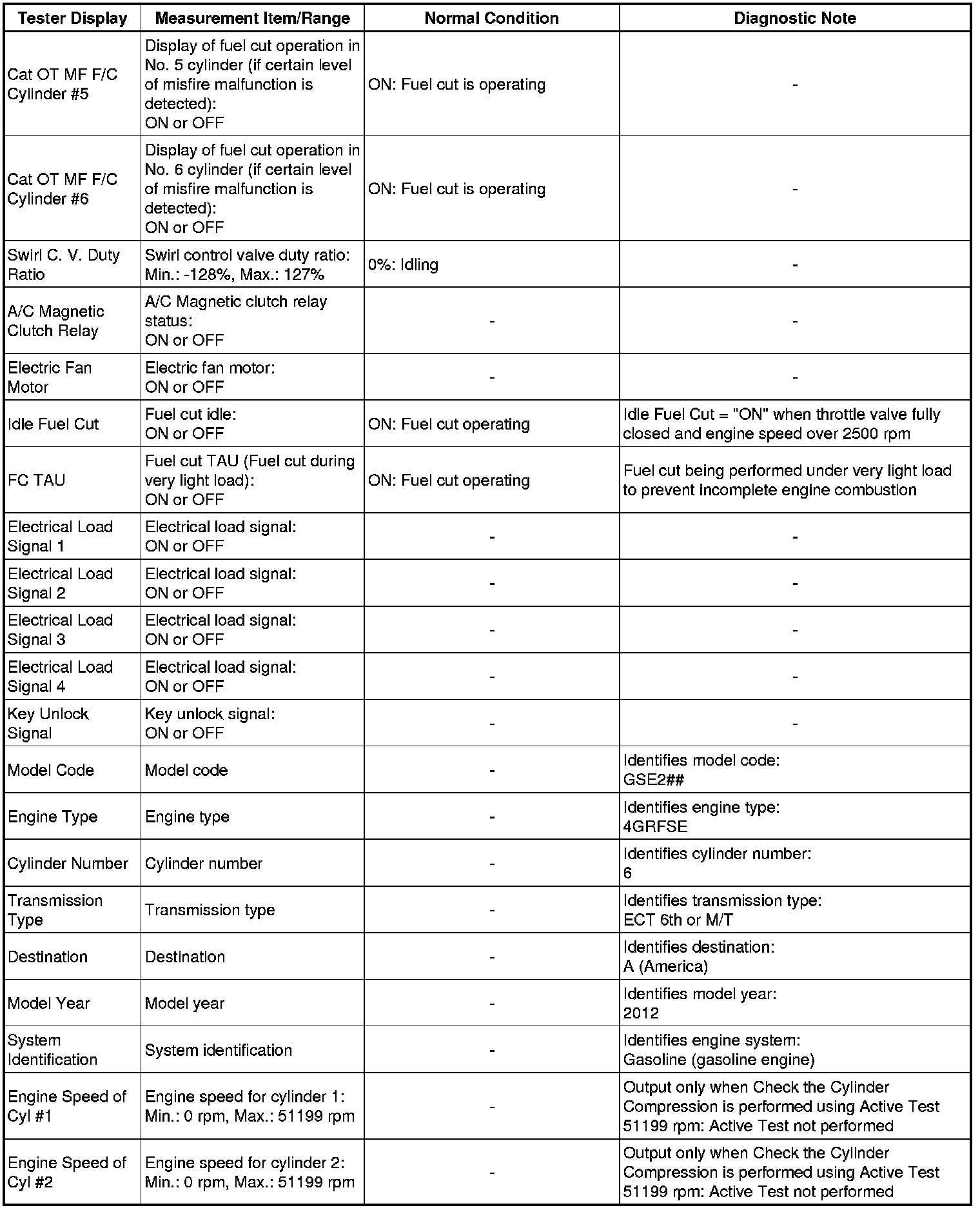 4GR-FSE ENGINE CONTROL: SFI SYSTEM: DATA LIST / ACTIVE TEST