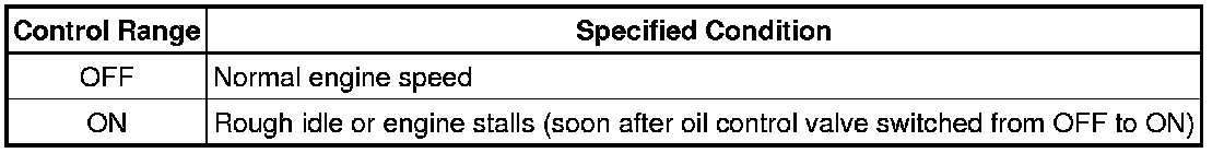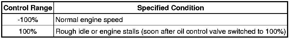 If the operation is not as specified, check the oil control valve, wire harness and ECM.