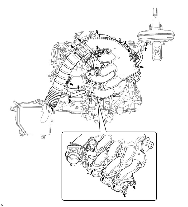 (a) Check that there are no vacuum leaks at the points shown in the illustration.