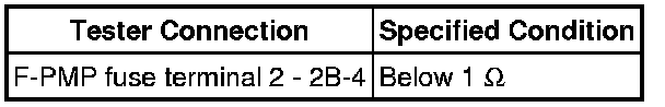 (1) Remove the F/PMP fuse. Using an ohmmeter, measure the resistance between the terminals.
