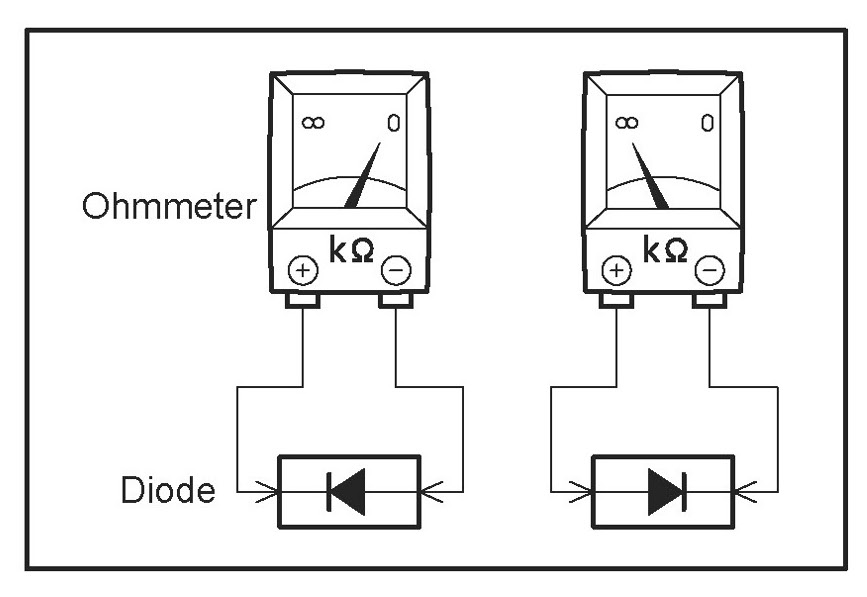 When contacting the negative lead to the diode positive side and the positive lead to the negative side, there should be continuity.