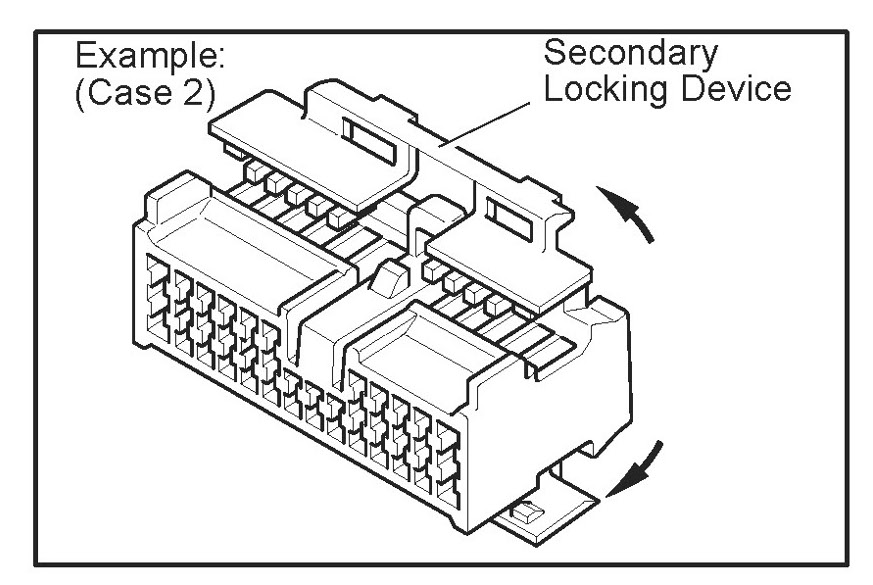 (b) Use a special tool or the terminal pick to unlock the secondary locking device or terminal retainer.