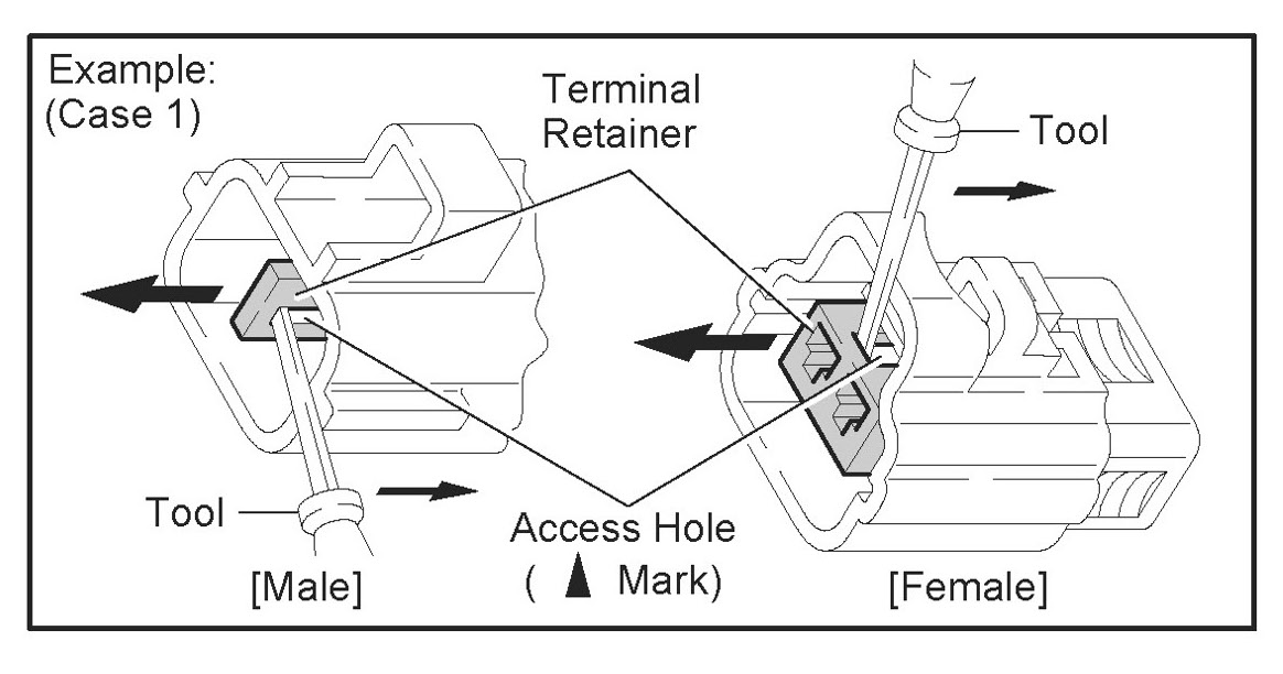 Type which cannot be pulled as far as Power Lock insert the tool straight into the access hole of terminal retainer as shown.