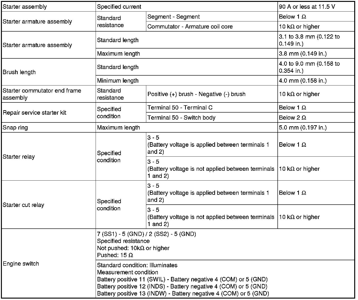 SPECIFICATIONS: 4GR-FSE STARTING: SERVICE DATA