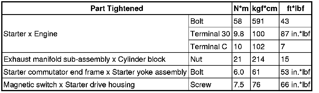 SPECIFICATIONS: 4GR-FSE STARTING: TORQUE SPECIFICATIONS