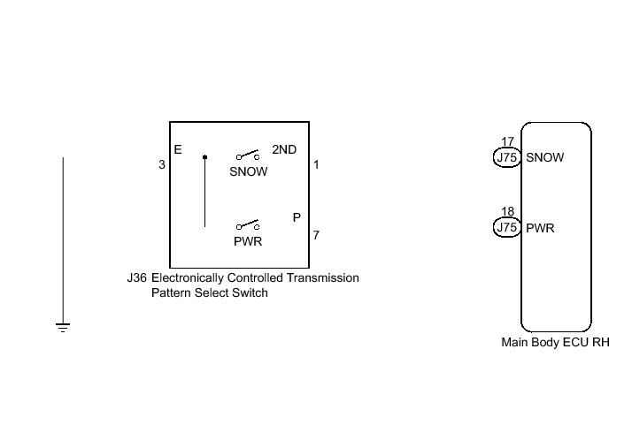 A960E AUTOMATIC TRANSMISSION / TRANSAXLE: AUTOMATIC TRANSMISSION SYSTEM: Pattern Select Switch Power Mode Circuit