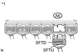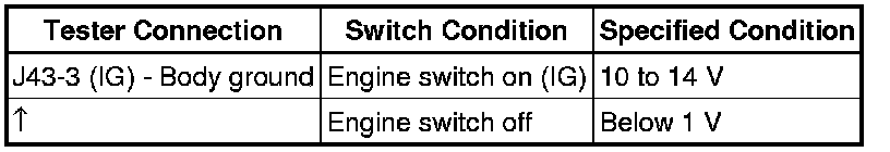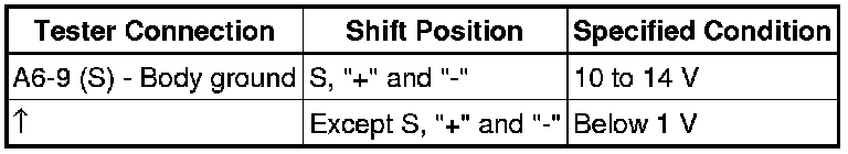 (c) Turn the engine switch on (IG) position, and measure the voltage according to the value(s) in the table below when the shift lever is moved to each position.