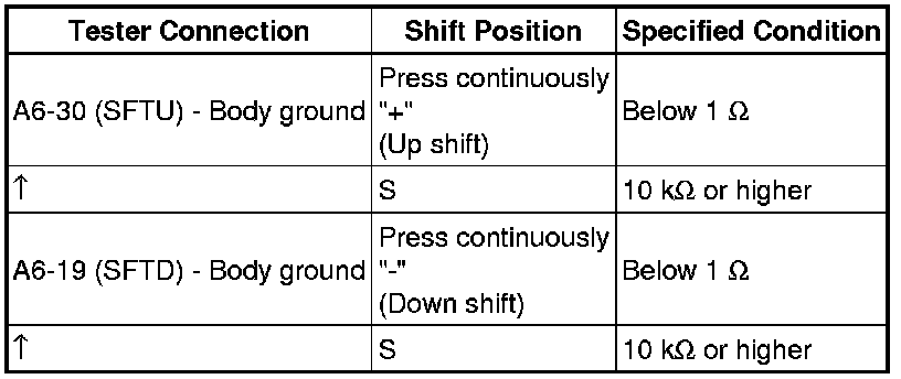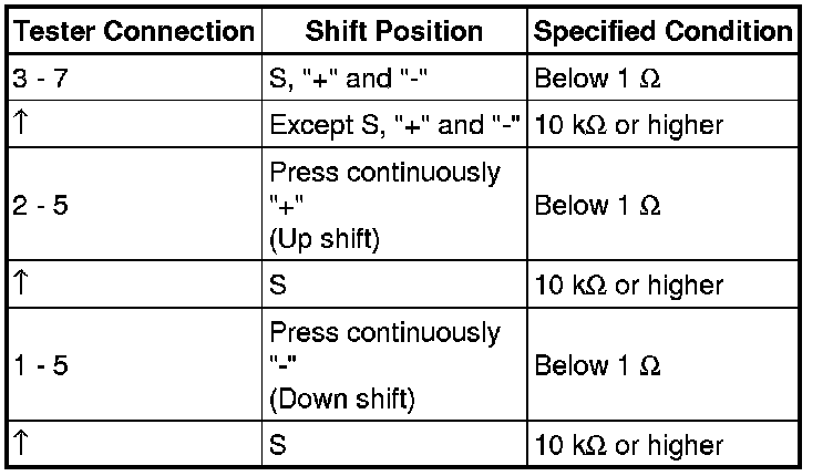 (f) Measure the resistance according to the value(s) in the table below when the shift lever is moved to each position.