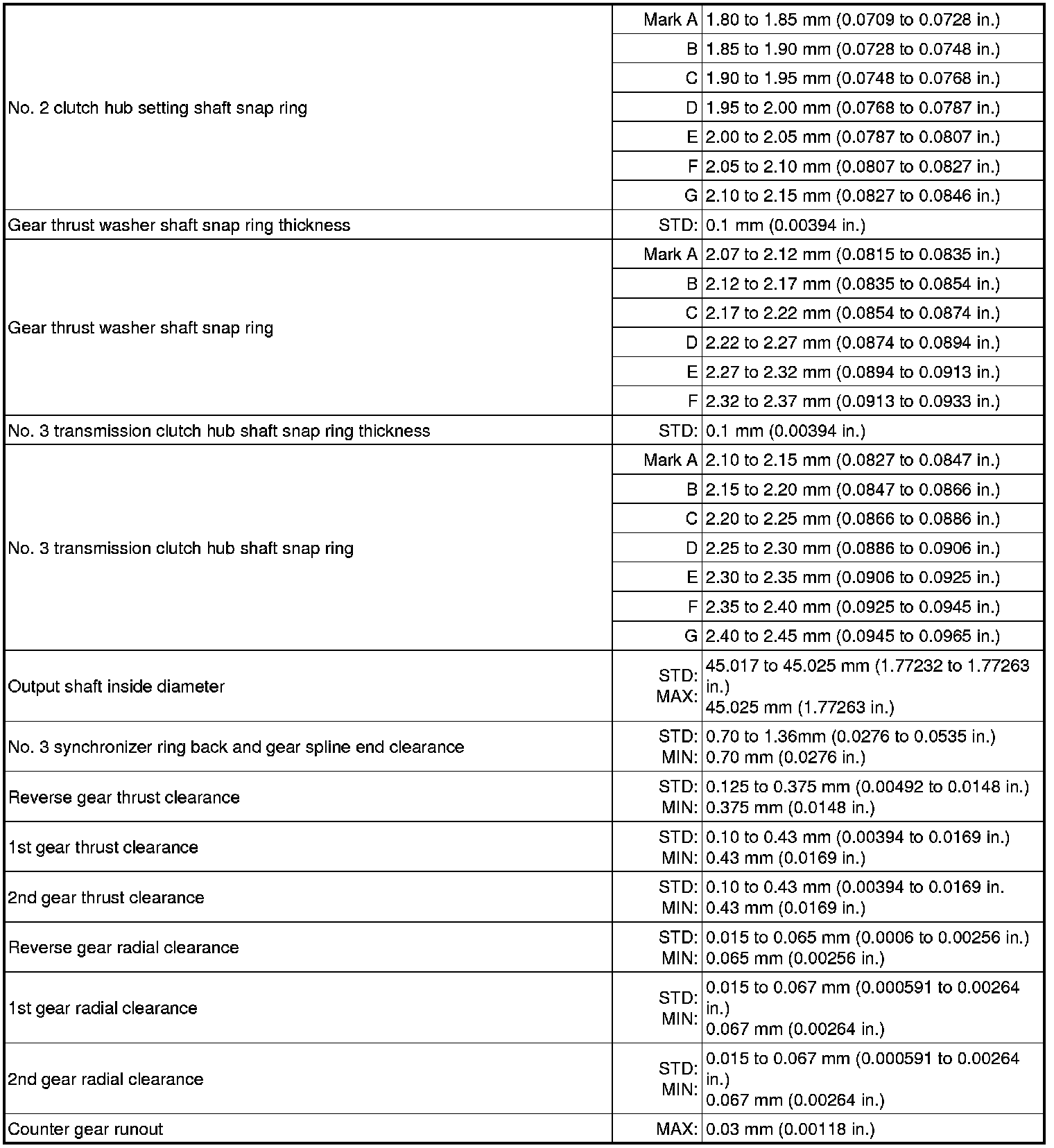 SPECIFICATIONS: RA62 MANUAL TRANSMISSION / TRANSAXLE: SERVICE DATA