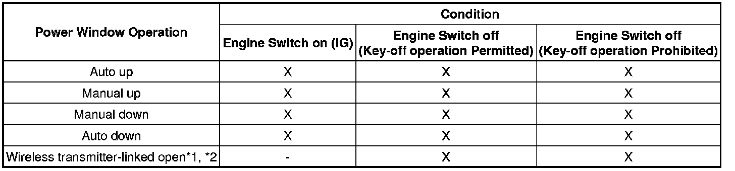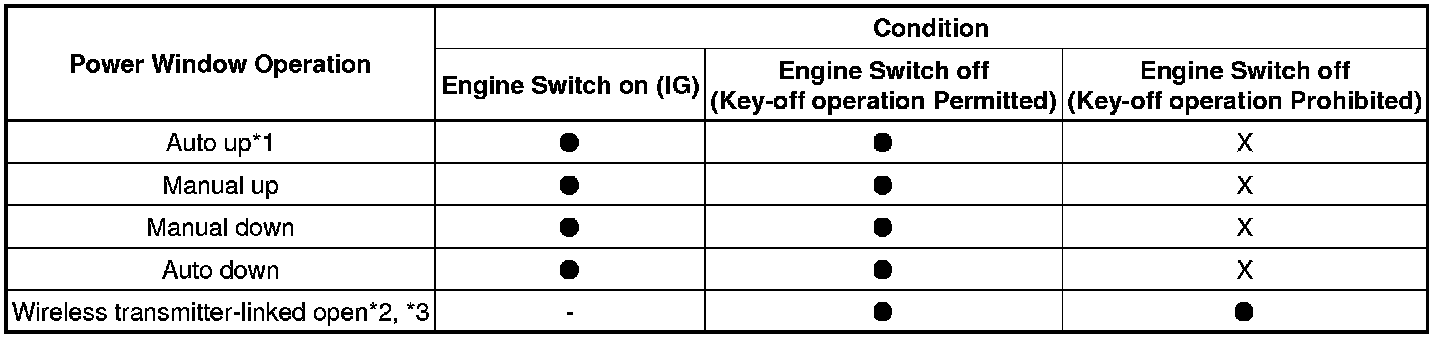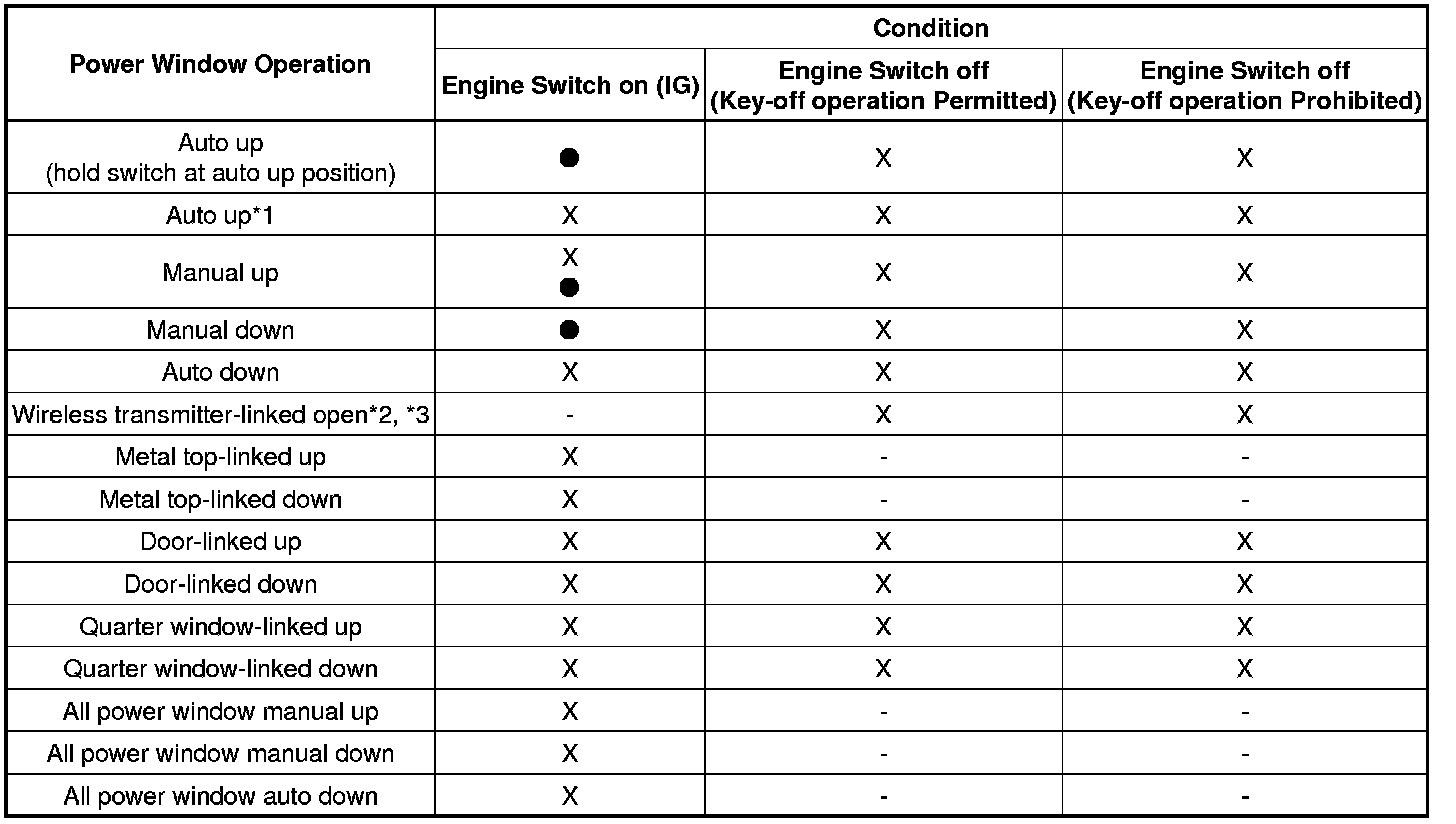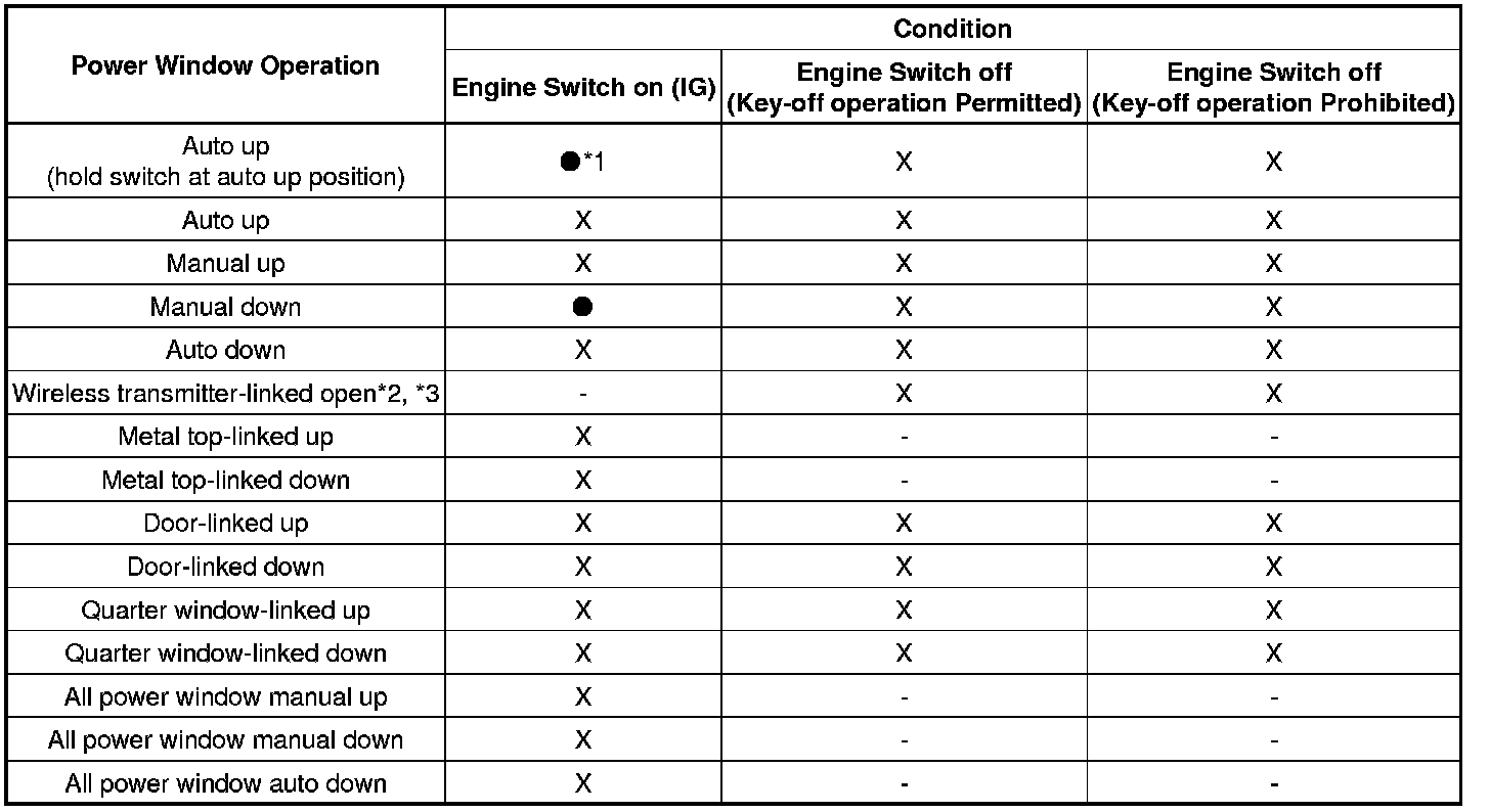 WINDOW / GLASS: POWER WINDOW CONTROL SYSTEM: FAIL-SAFE CHART
