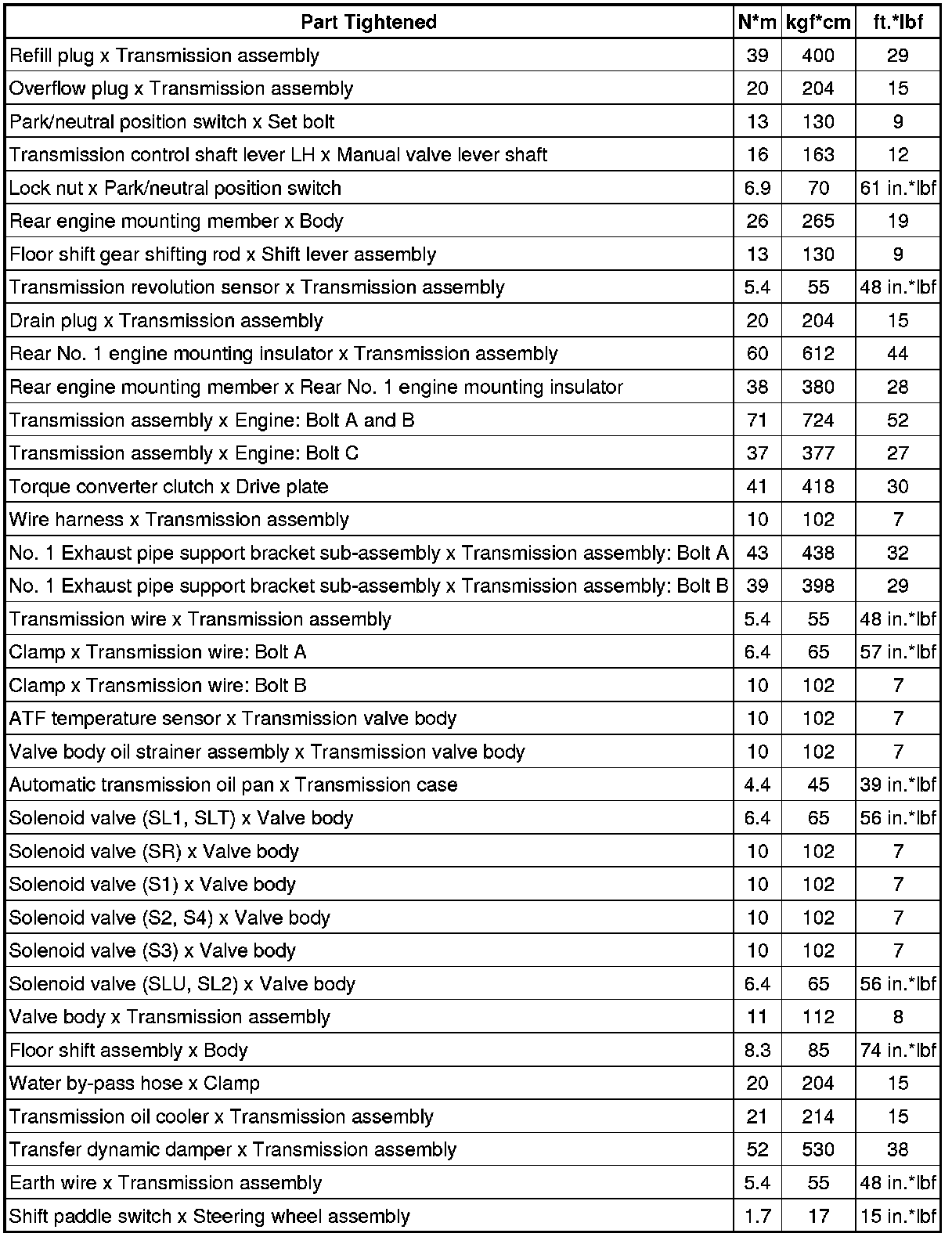 SERVICE SPECIFICATIONS: A760H AUTOMATIC TRANSMISSION: TORQUE SPECIFICATIONS