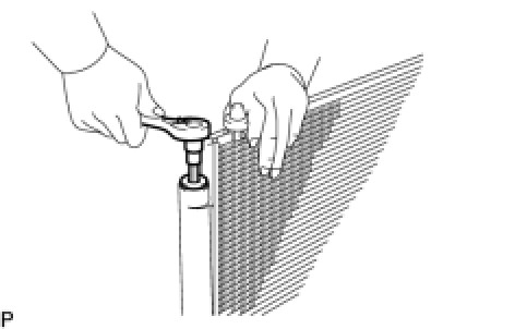 (c) Using a straight hexagon wrench 14 mm, install the cap to the cooler condenser core.