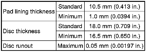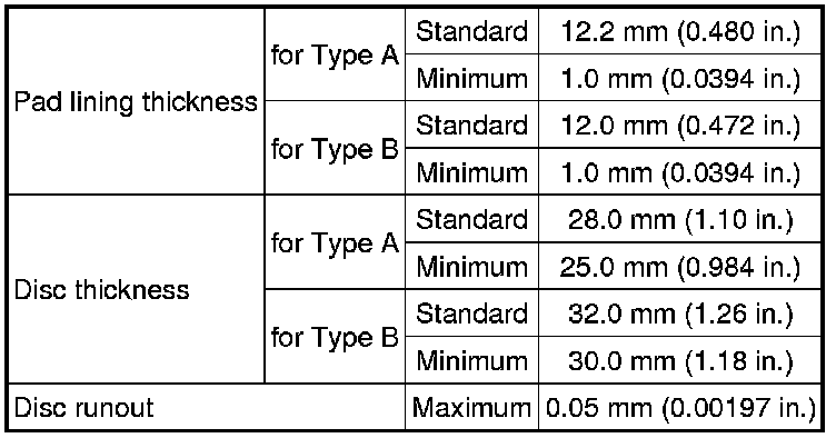 SERVICE SPECIFICATIONS: BRAKE: SERVICE DATA