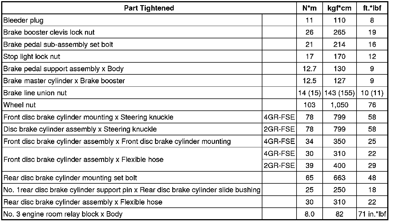 SERVICE SPECIFICATIONS: BRAKE: TORQUE SPECIFICATIONS