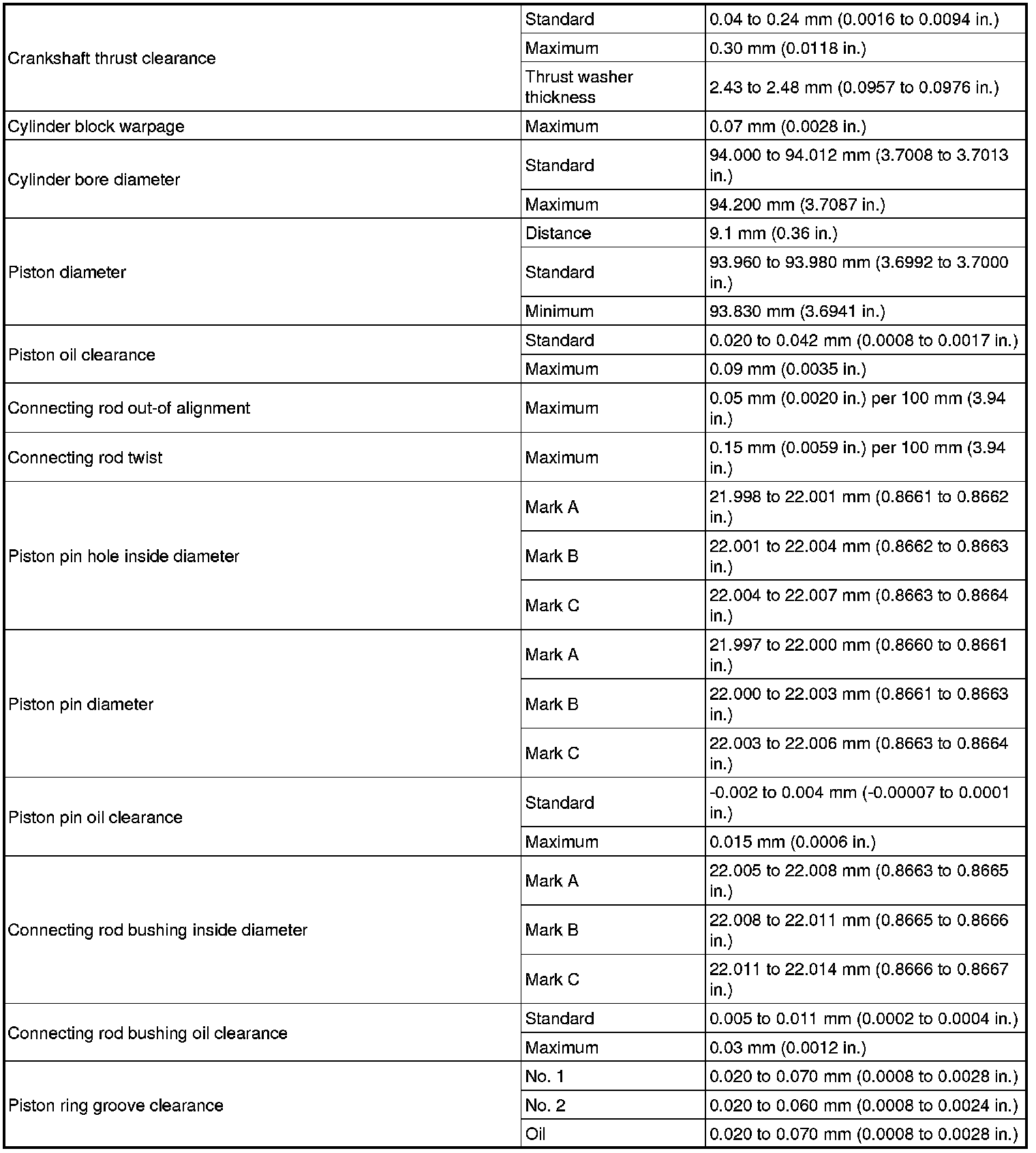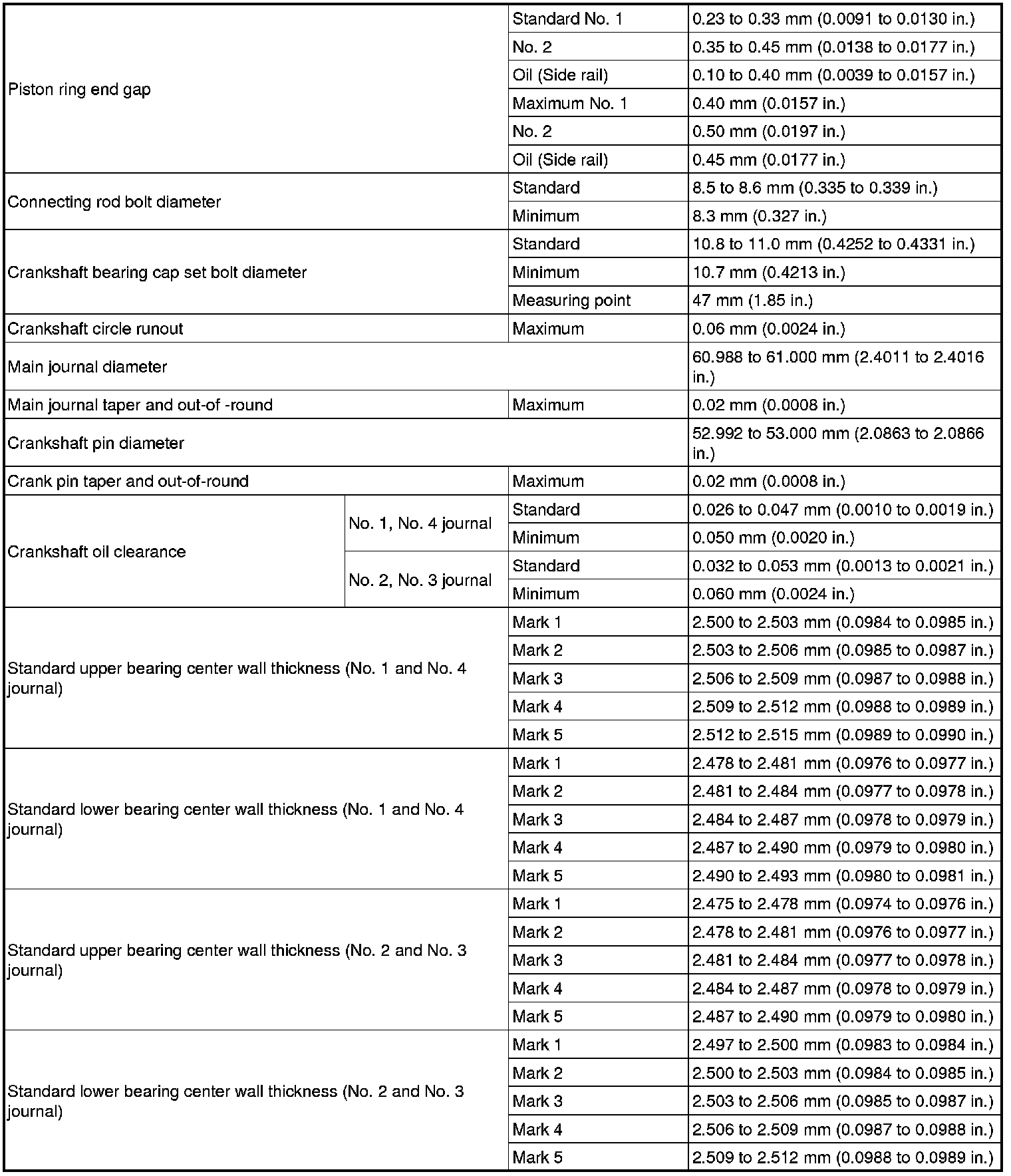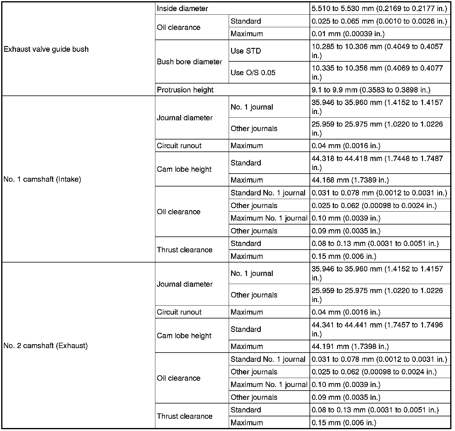 SERVICE SPECIFICATIONS: 2GR-FSE ENGINE MECHANICAL: SERVICE DATA
