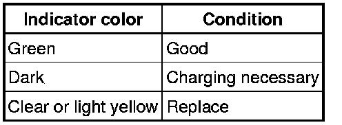 (1) If the electrolyte level is low, replace the battery (or add distilled water) and check the charging system.