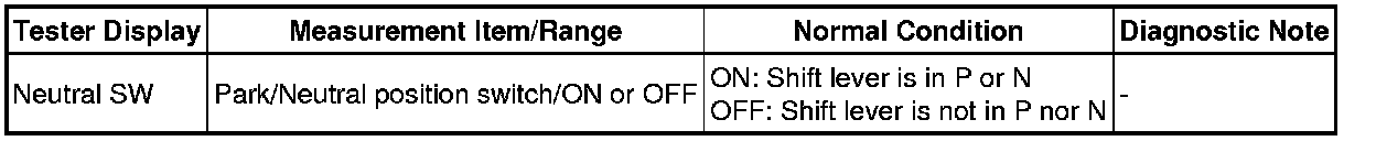 13. READ VALUE USING TECHSTREAM (PARK/NEUTRAL POSITION SWITCH OR CLUTCH PEDAL SWITCH)