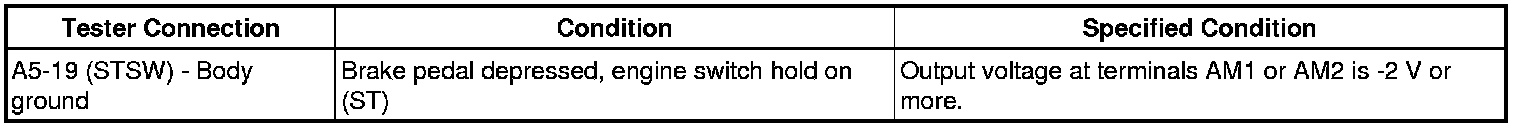 When there is fuel in the fuel tank, the key is inside the vehicle, and the shift lever is in P, check that depressing the brake pedal and pressing the engine switch crank the engine.