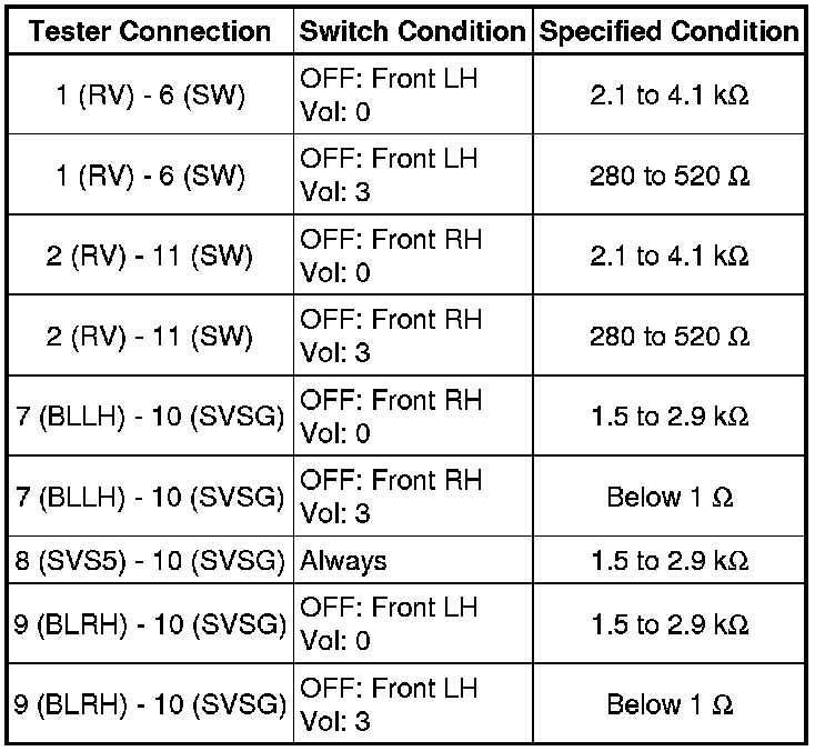 (1) Measure the resistance according to the value(s) in the table below.