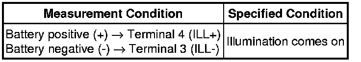 (1) Apply battery voltage and check operation of the switch, as shown in the table below.