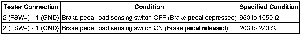 If the value is not as specified, replace the brake pedal load sensing switch.