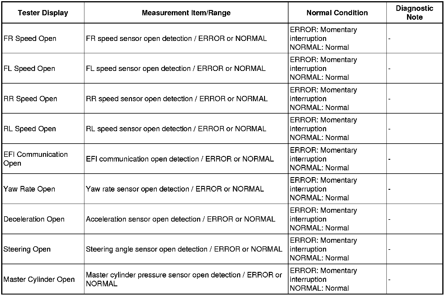 * The ERROR display on the Techstream will remain displayed for 1 second after the harness signal changes from momentary interruption (open circuit) to normal condition.