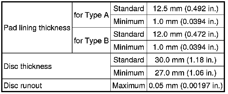 SPECIFICATIONS: BRAKE (FRONT): SERVICE DATA